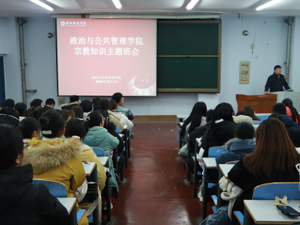 为进一步加深我院新生对我国宗教知识的理解,促进新生树立正确的宗教信仰观念,提高新生认识和对待宗教问题的能力。12月1日晚,我院于和鸣阶梯1303召开宗教知识主题班会,本次班会由我院学工办主任、20级辅导员王国辉主讲,20级全体学生参与。