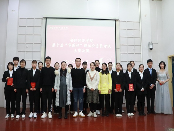 11月21日,由我院主办的第十届“华图杯”模拟公务员考试大赛决赛暨颁奖典礼于和展阶梯102成功举行。我院分团委负责人黄琳琳、数学与统计学院辅导员赵勇飞和分团委负责人王少华、经济学院分团委负责人华璐璐出席活动,安阳华图教育索文龙校长担任主考官,20级部分学生参与。