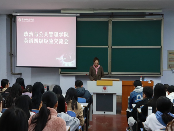 11月20日晚,由我院学习部主办的英语四级考试经验交流会于和鸣阶梯1102顺利举办。本次交流会邀请了我院18级优秀学生代表李梓妍、李佳骏、卢小珂、韩雅文为到场学生作经验交流,19级学生全体参与。