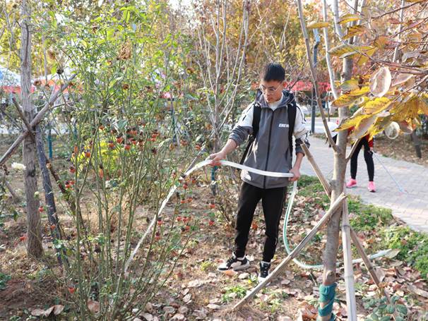 经过简单分工后,同学们在各自负责区域内开始了热火朝天的劳动。清理杂草、捡拾垃圾、浇灌花树......你脱外套,我卷衣袖,干劲十足,不放过任何一处死角。在劳动中,学生们热情高涨,踏实认真,在美化校园的同时,也体会到校园环卫工人的辛苦,纷纷表示要珍惜他人的劳动成果,为创建文明校园贡献自己的一份力量。