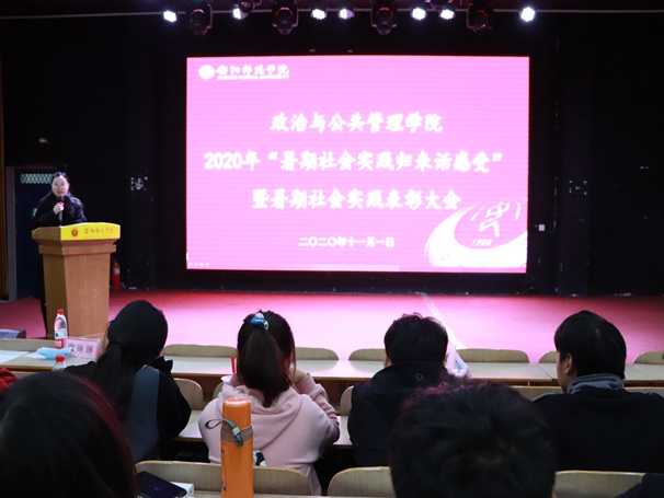 11月1日晚,我院于和展阶梯101召开2020年暑期社会实践归来话感受暨表彰大会,本次会议由我院分团委负责人黄琳琳老师主持,20级全体学生参加。