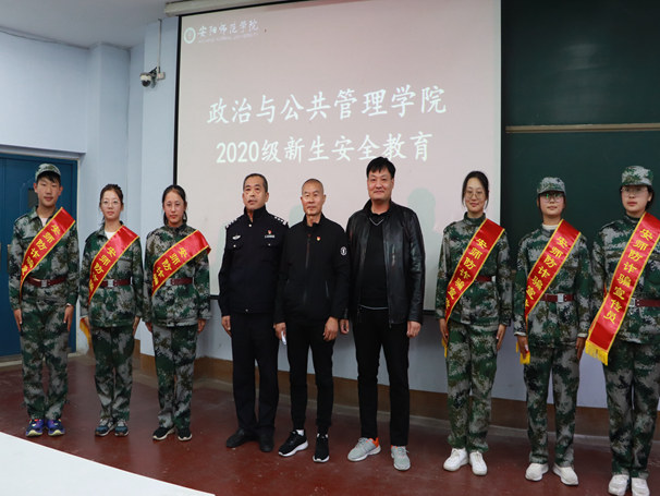 会上,刘警官向新生介绍了学校及周边环境的整体治安情况,强调了人身安全、财产安全的重要性,并结合发生在校园内的真实案例告诫同学们一定要谨防电信诈骗、拒绝一切网络刷单。随后,刘警官为我院六名新生颁发了“安师防诈骗宣传员”袖章,标志着我院“防诈骗宣传小队”正式成立。接着,张处长分别从“入学安全”、“财产安全”、“人身安全”、“消防安全”、“交通安全”等九个方面展开讲述,教导同学们要提高安全警惕、养成良好的行为习惯、加强自律并善于运用法律途径解决问题。最后,张处长表示:希望同学们将安全教育落实到日常生活中,预防各类事故的发生。