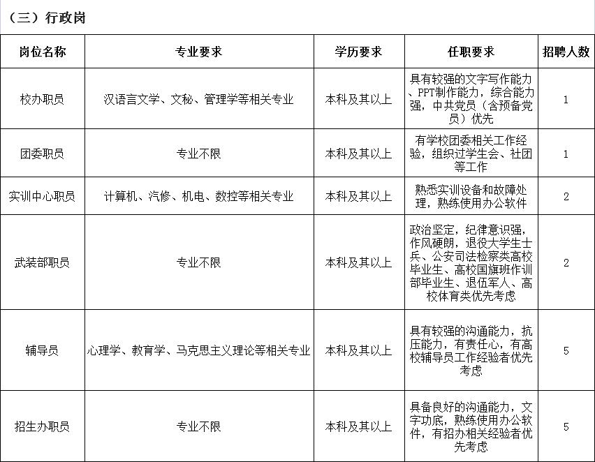 学校现面向社会招聘各专业专、兼职教师、学科带头人和行政岗人员。