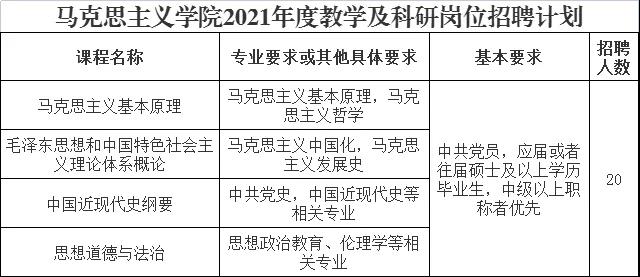 教学科研岗位(教师):要求具有硕士及以上学位,中共党员,本硕专业基本一致。具有较强的教学能力和较高的科研水平;具备高校教师普通话水平和英语能力;品行端正、身心健康,能为人师表;责任心强,具有团队协作精神。