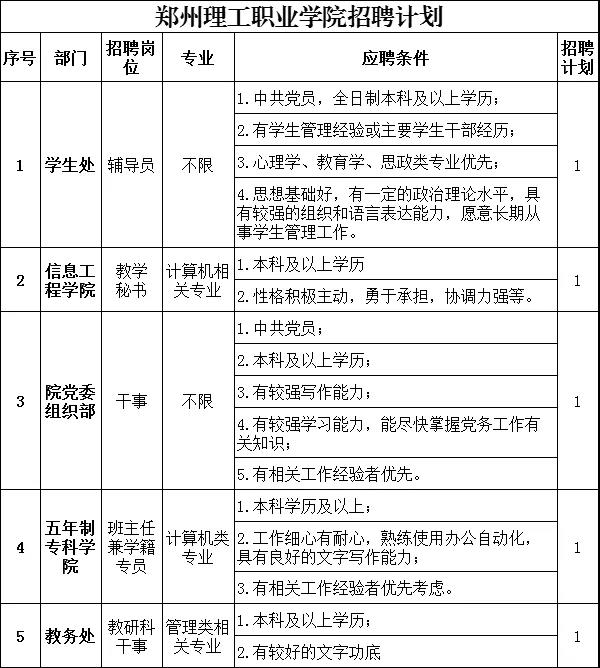 郑州理工职业学院因事业发展需要面向社会诚聘教师。
