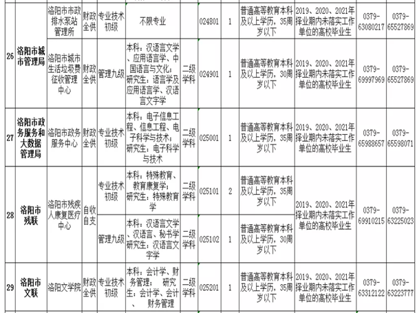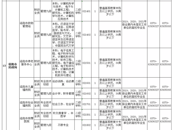 1、《2021年洛阳市市直事业单位招聘工作人员职位表》;