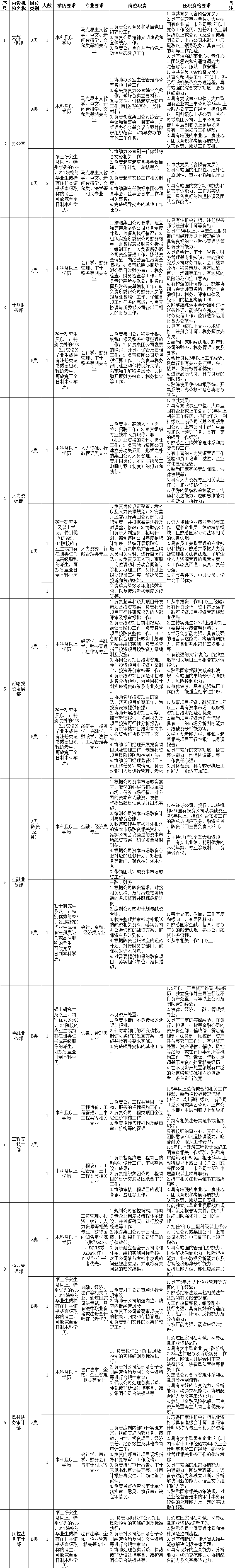 具体岗位任职条件详见《许昌市投资总公司公开招聘岗位需求目录1》(附件1)